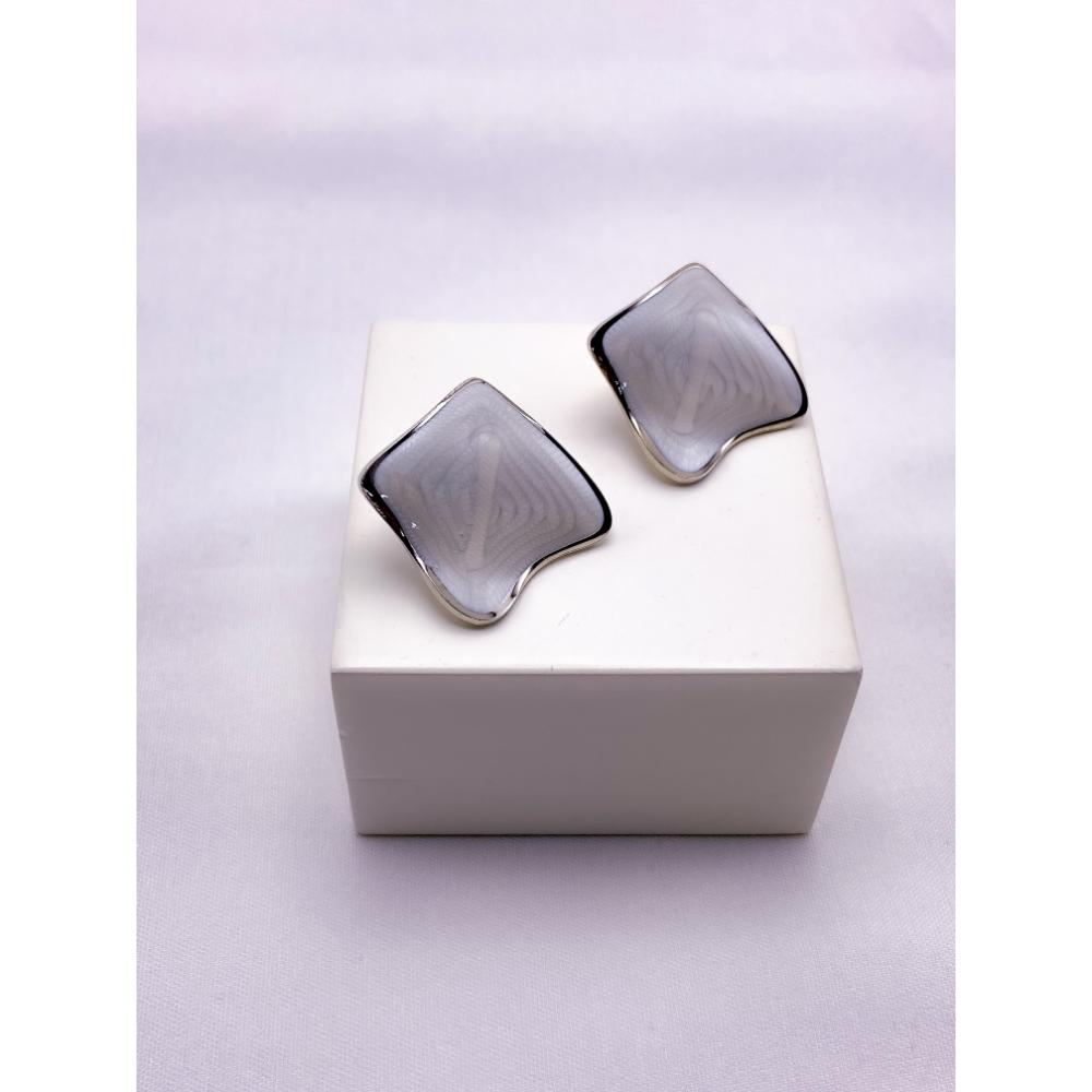 PRODUTO: BRINCO AÇO INOX GEOMETRICO PEROLADO - PRATEADO