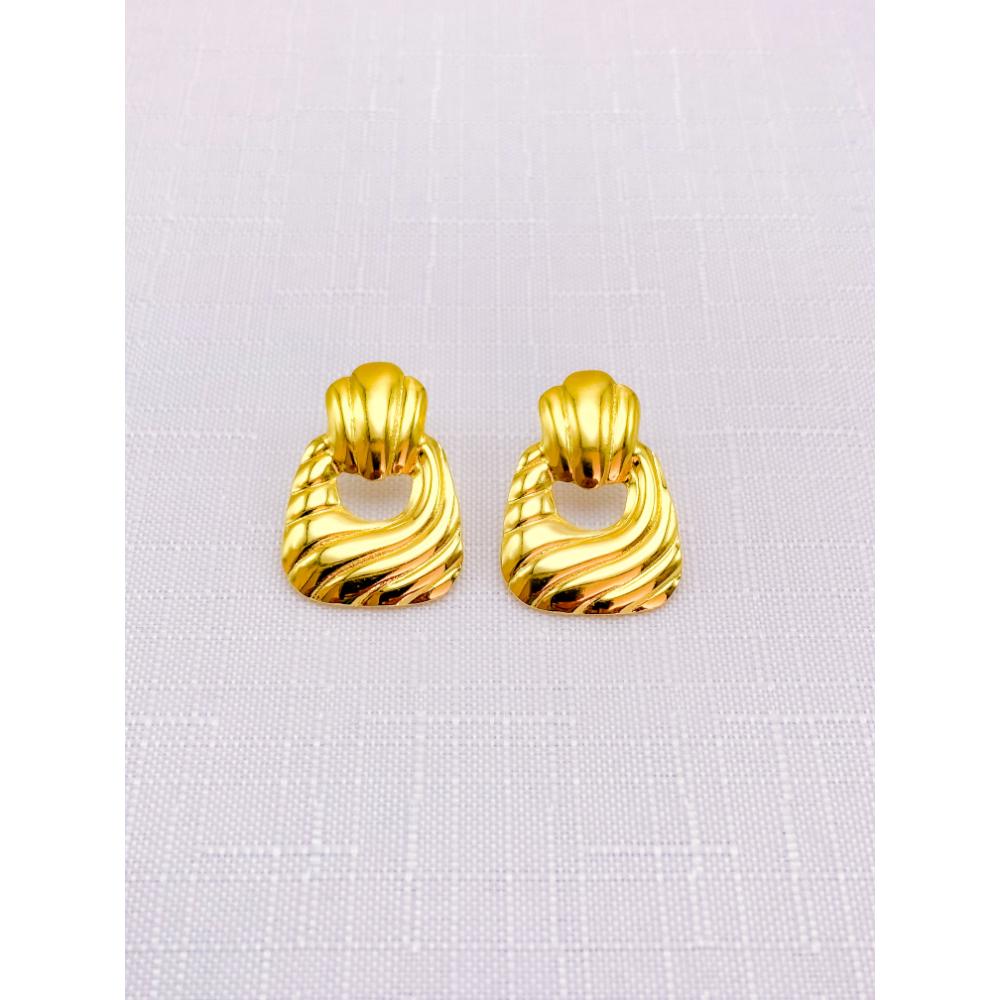 PRODUTO: BRINCO AÇO INOXIDÁVEL GEOMETRICO COM DETALHES - DOURADO