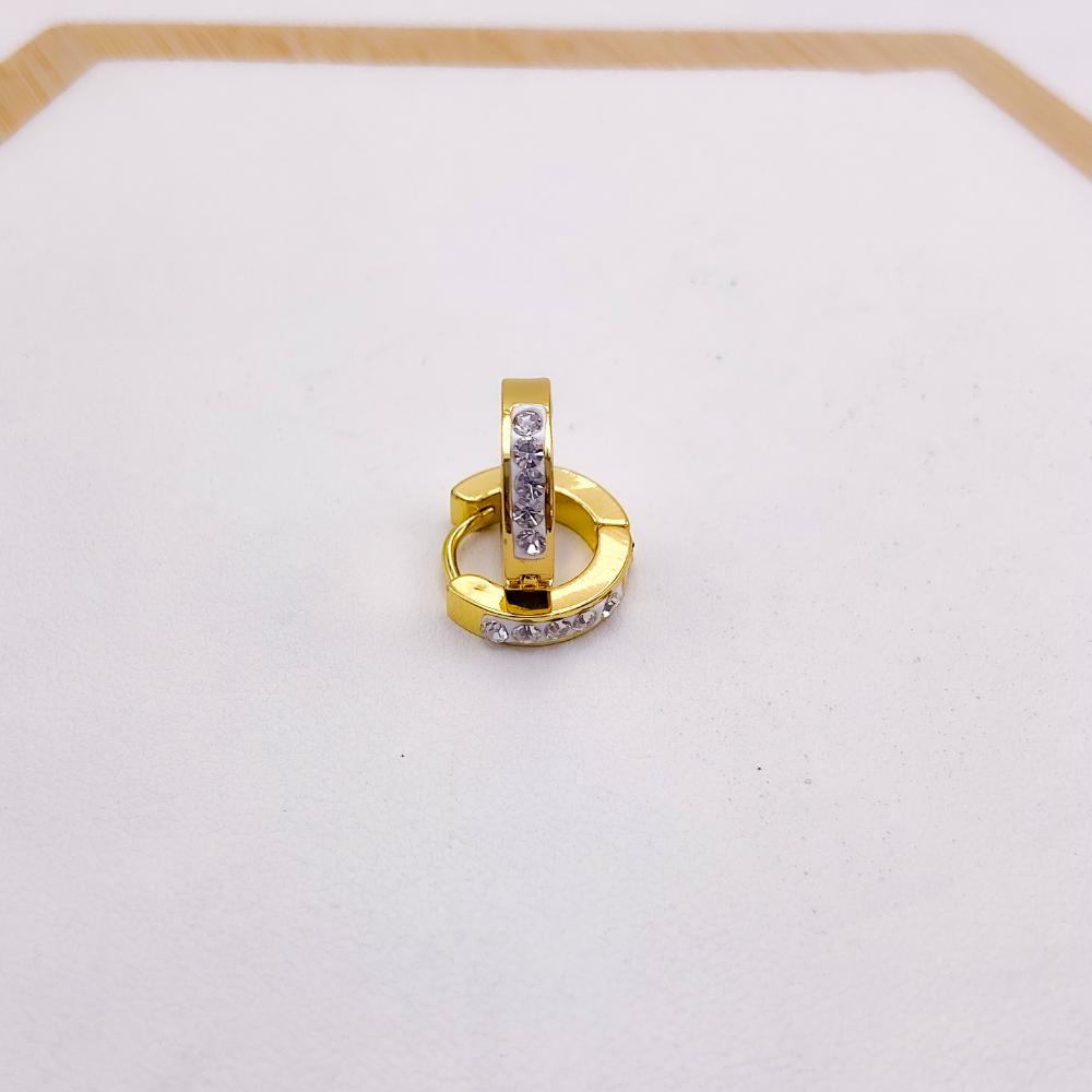 PRODUTO: BRINCO ARGOLINHA CLICK AÇO INOXIDÁVEL 1 FIO STRASS - DOURADO