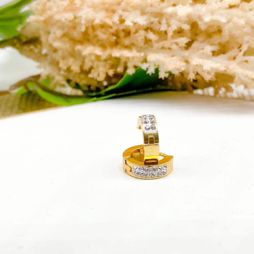 PRODUTO: BRINCO ARGOLINHA CLICK AÇO INOX CRAVEJADA STRASS - DOURADO