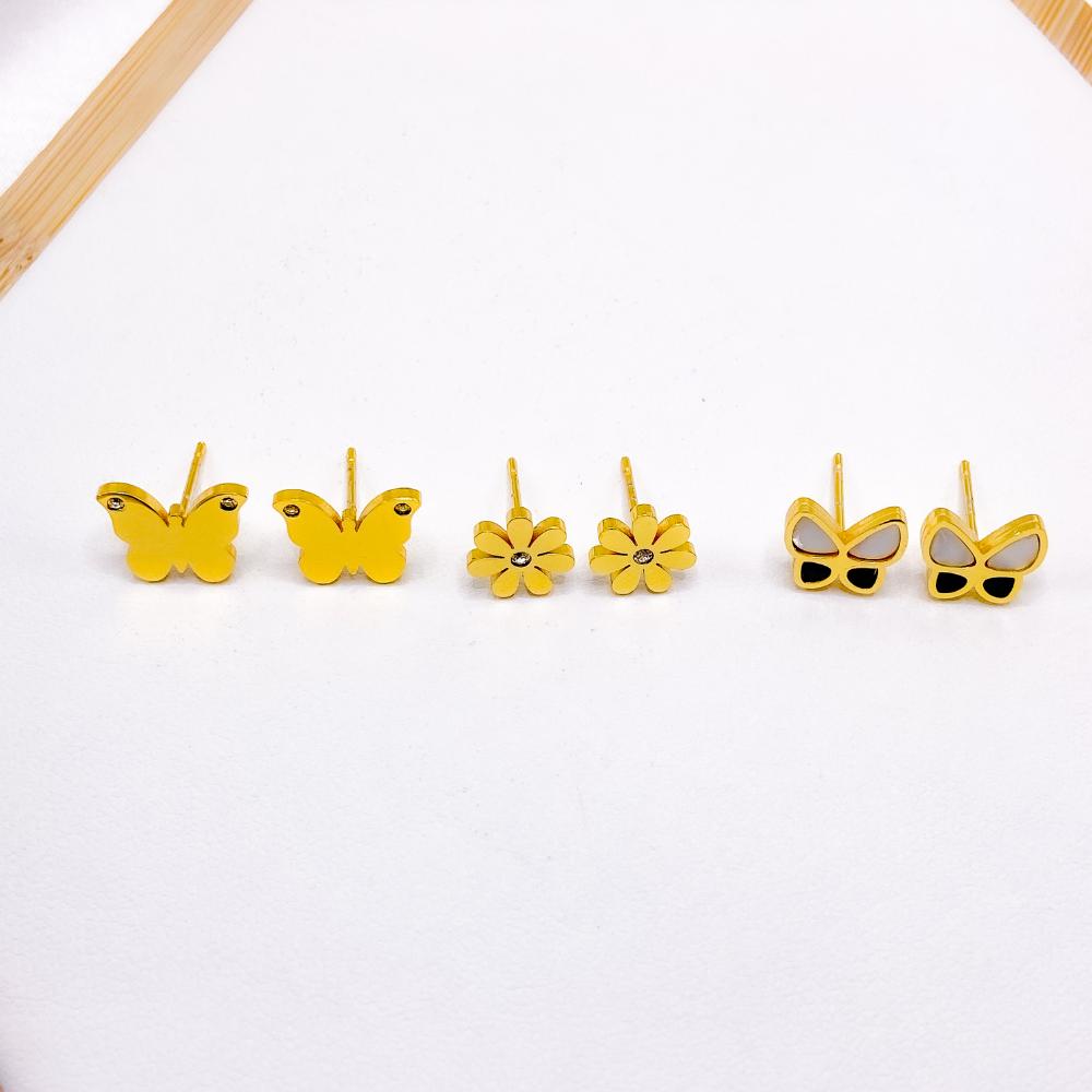 CARTELA BRINCO TRIO  AÇO INOXIDÁVEL BORBOLETA PEROLADA - DOURADA