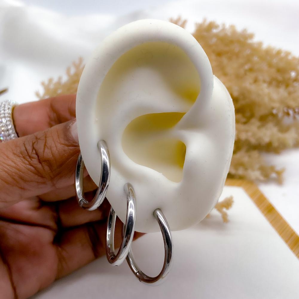 PRODUTO: CARTELA BRINCO TRIO ARGOLINHA CLICK AÇO INOX - PRATEADO