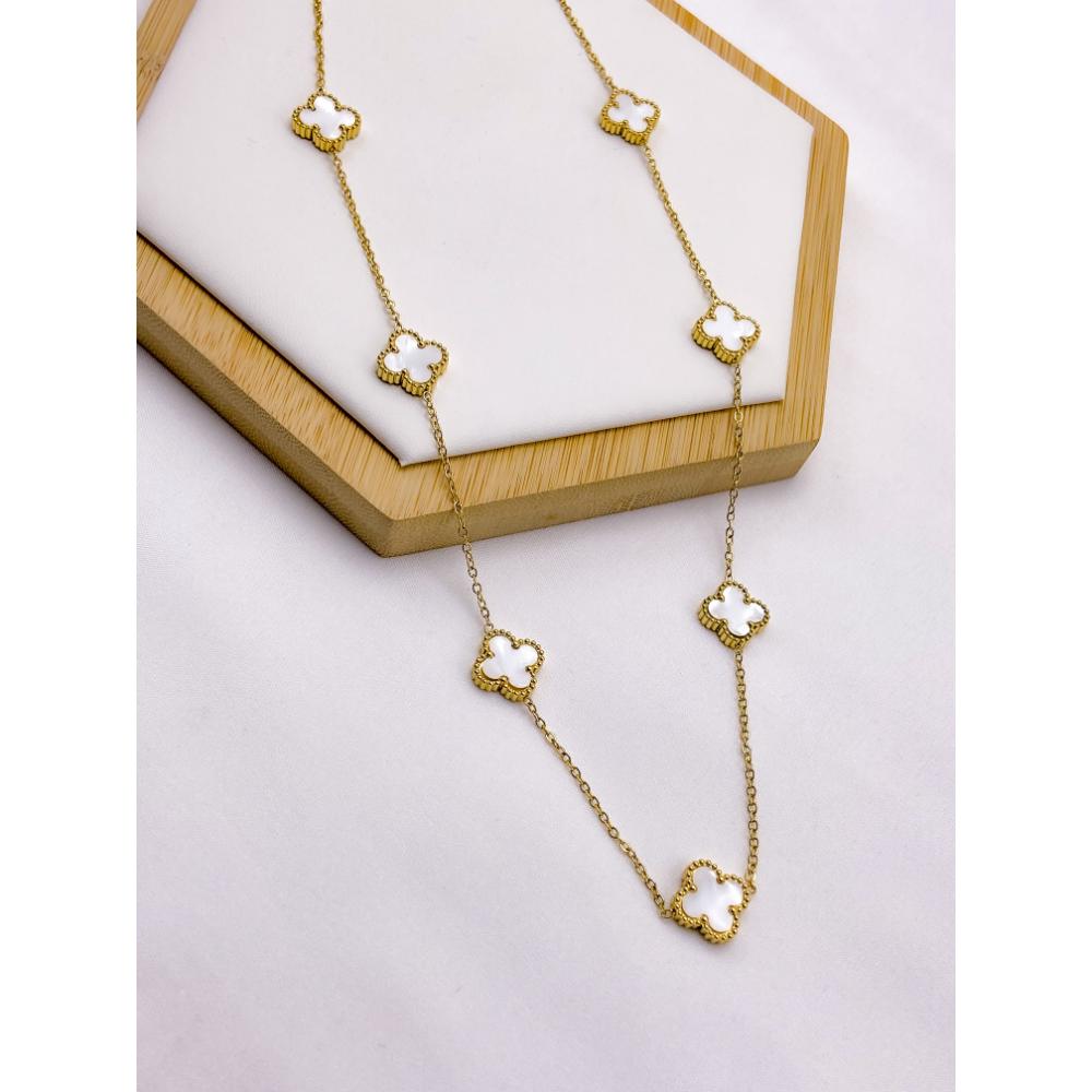 COLAR AÇO INOX 50CM TREVO PEROLADO - DOURADO
