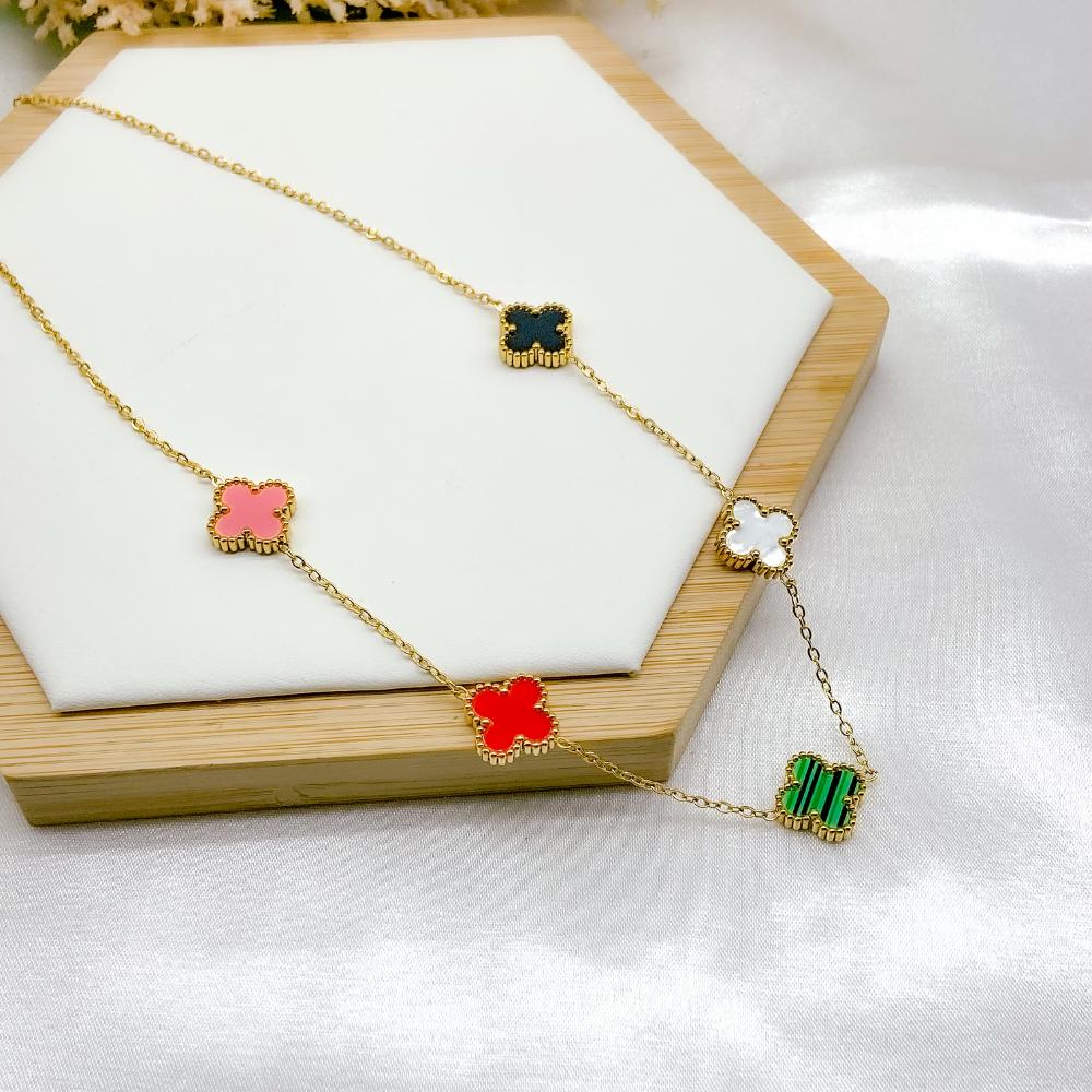 COLAR AÇO INOX 45 CM TREVO DOURADO - COLORIDO