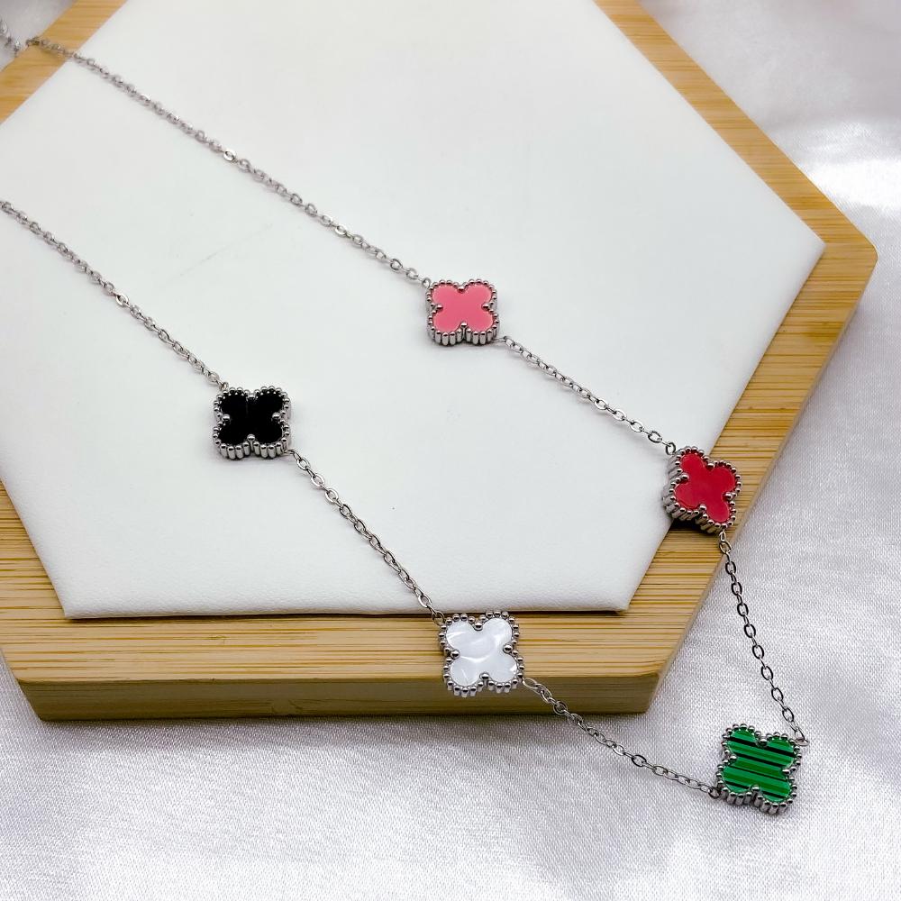 COLAR AÇO INOX 45 CM TREVO PRATEADO - COLORIDO