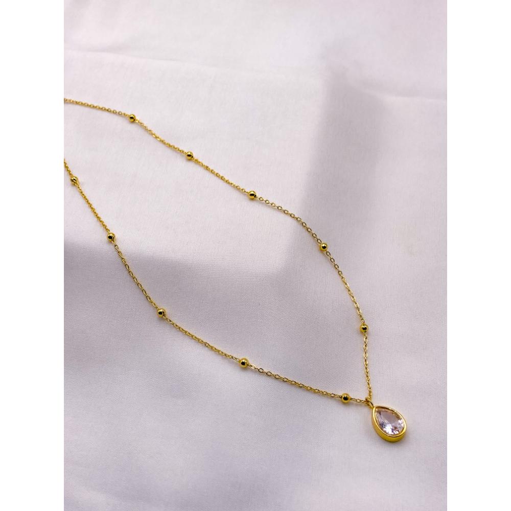 COLAR AÇO INOX 45CM BOLINHAS PINGENTE GOTA PEDRA CRISTAL - DOURADO