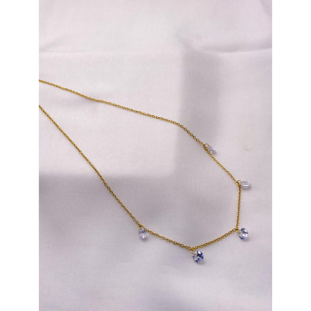 COLAR AÇO INOX 45CM PEDRAS CRISTAL - DOURADO