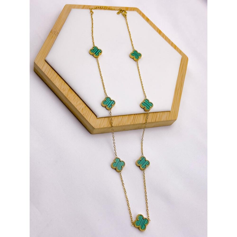 COLAR AÇO INOX 50CM TREVO VERDE - DOURADO