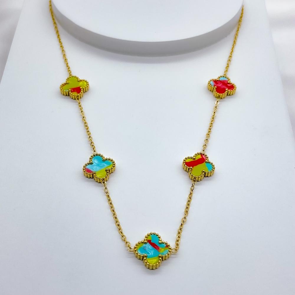 COLAR AÇO INOX TREVO COLORIDO - DOURADO