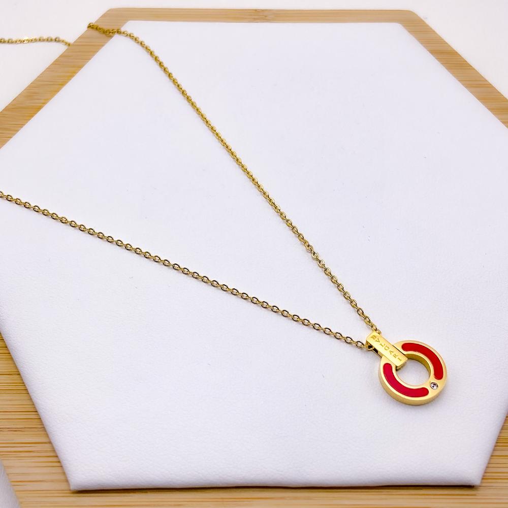 COLAR AÇO INOXIDÁVEL 45 CM INSPIRE-SE PINGENTE VERMELHO - DOURADO