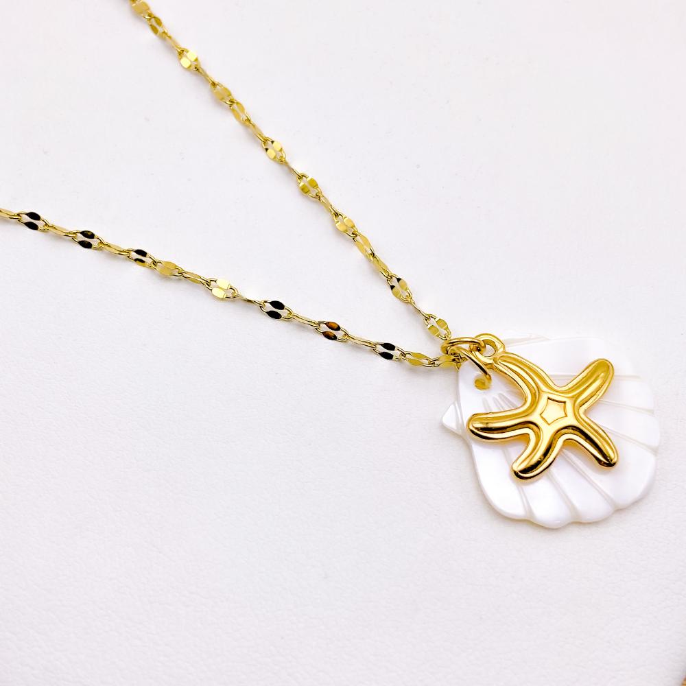COLAR AÇO INOXIDÁVEL 45CM CONCHA PEROLADA DOURADO - ESTRELA DO MAR