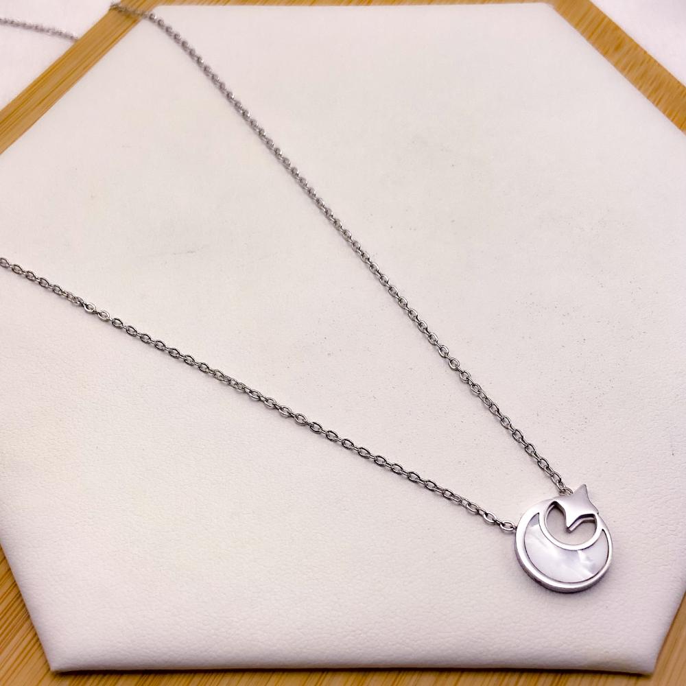 COLAR AÇO INOXIDÁVEL 45CM MEIA LUA PEROLADA - PRATEADO