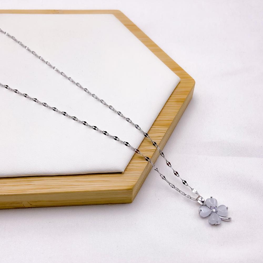 COLAR AÇO INOXIDÁVEL 45CM PINGENTE BANHADO FLOR PEROLADA - PRATEADO