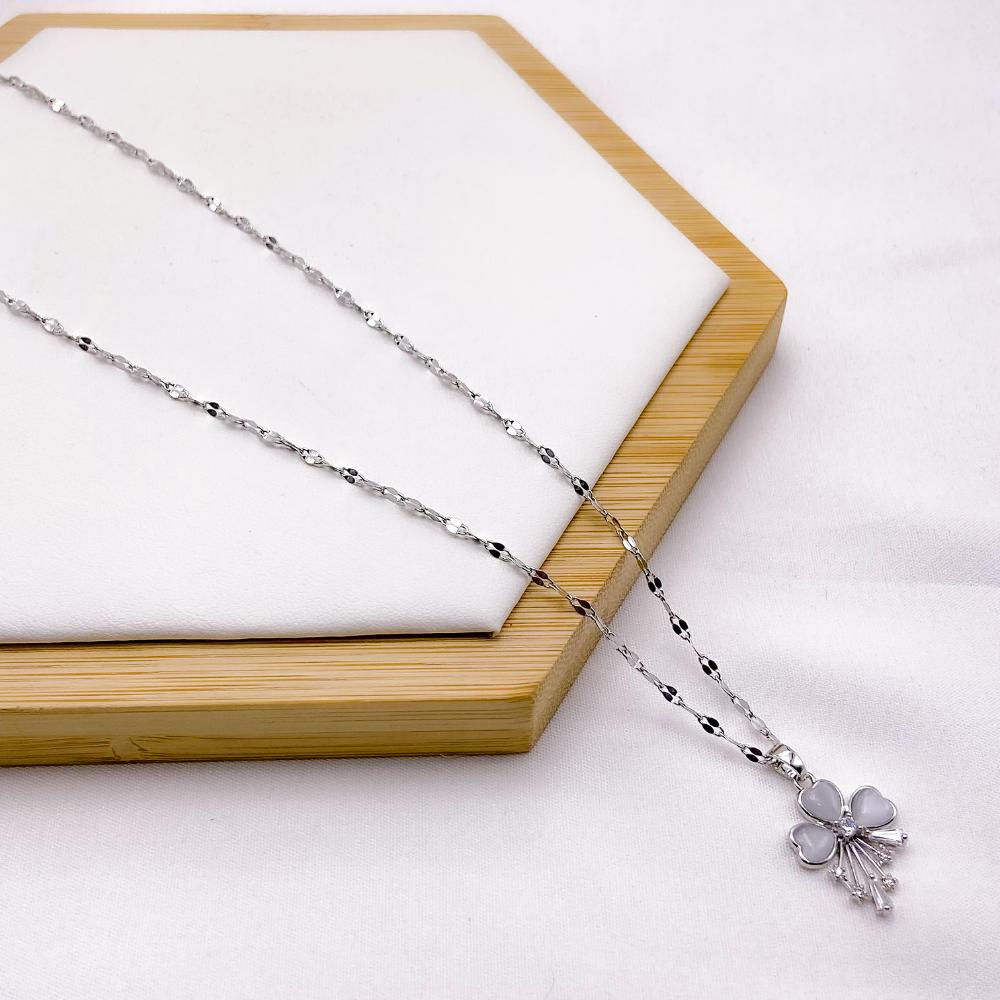 COLAR AÇO INOXIDÁVEL 45CM PINGENTE BANHADO FLOR PEROLADA - PRATEADO