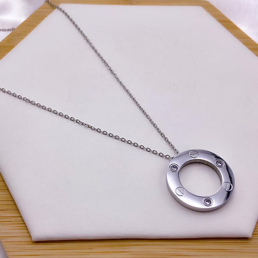 COLAR AÇO INOXIDÁVEL 45CM PINGENTE INSPERE-SE COM PEDRA CRISTAL - PRATEADO