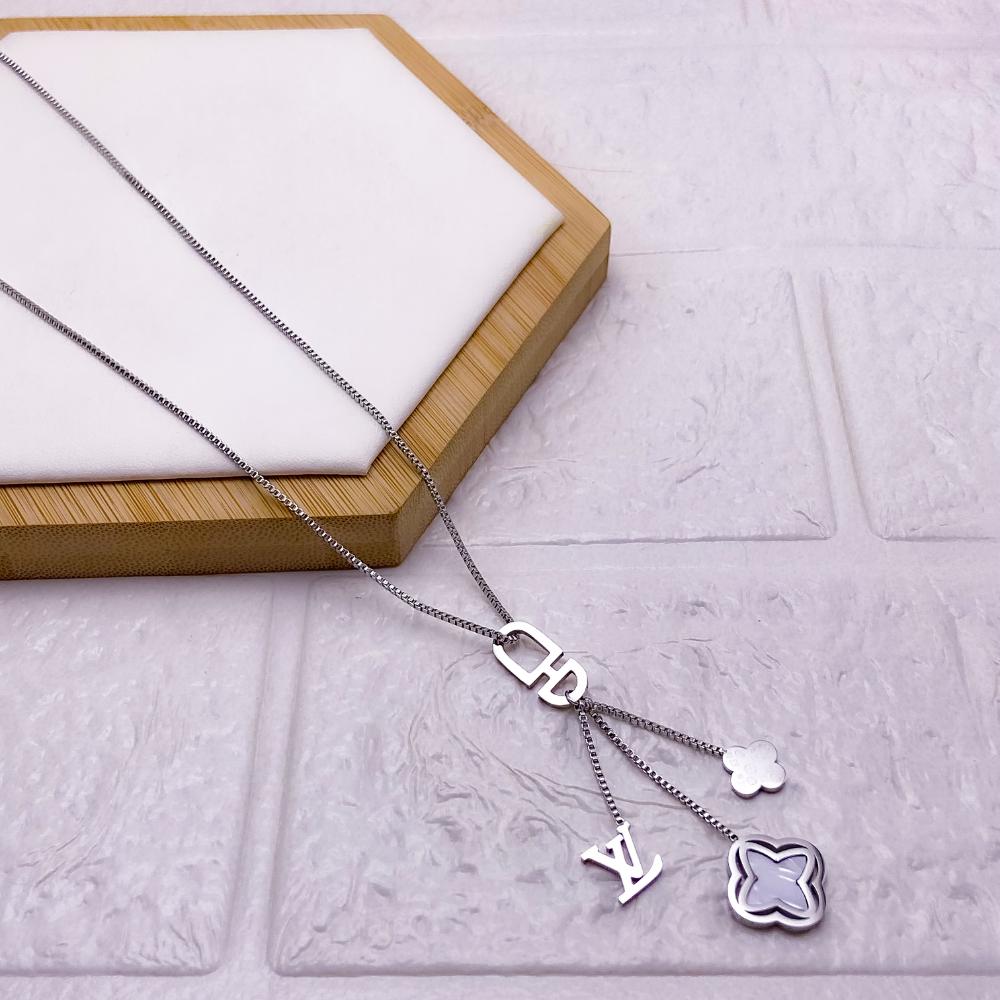 COLAR AÇO INOXIDÁVEL 45CM TREVO PEROLADO - PRATEADO