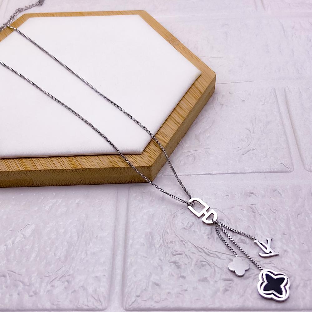 PRODUTO: COLAR AÇO INOXIDÁVEL 45CM TREVO PRETO - PRATEADO