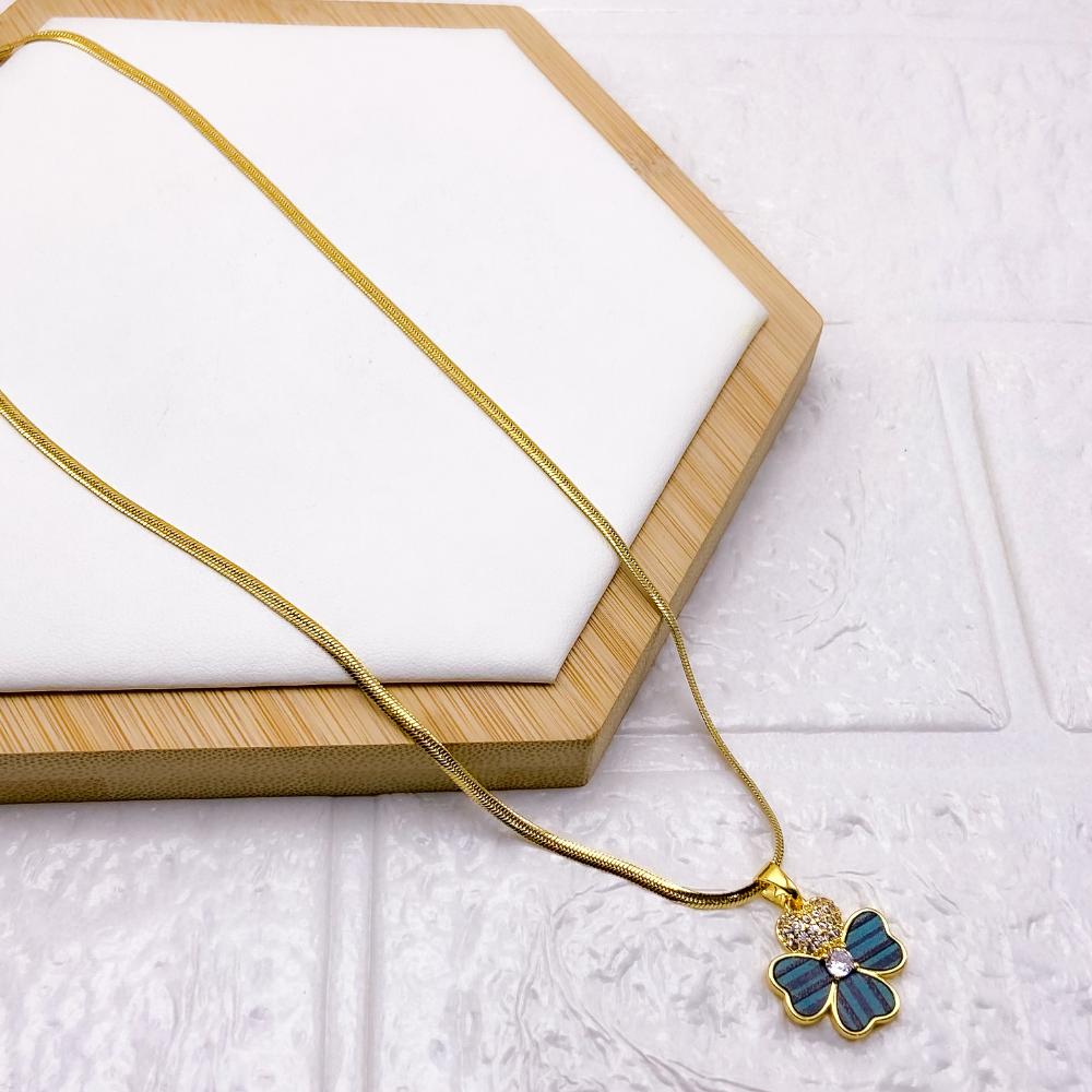 COLAR AÇO INOXIDÁVEL FITA 45CM PINGENTE BANHADO TREVO VERDE - DOURADO