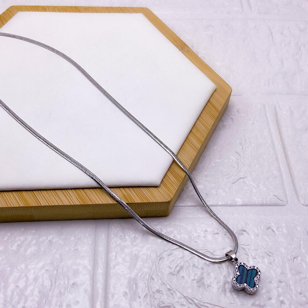 COLAR AÇO INOXIDÁVEL FITA 45CM PINGENTE BANHADO TREVO VERDE - PRATEADO