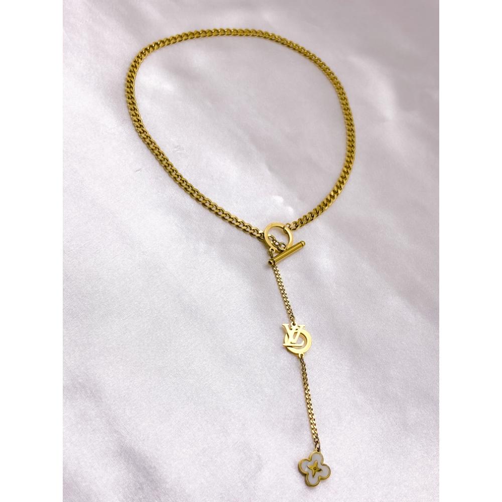 COLAR AÇO INOX 45CM ESTILO GRAVATINHA FECHO T TREVO PEROLADO - DOURADO