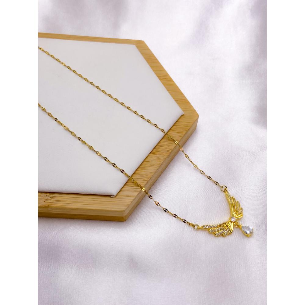 PRODUTO: COLAR AÇO INOX 45CM PINGENTE ASAS CRAVEJADO BANHADO - DOURADO