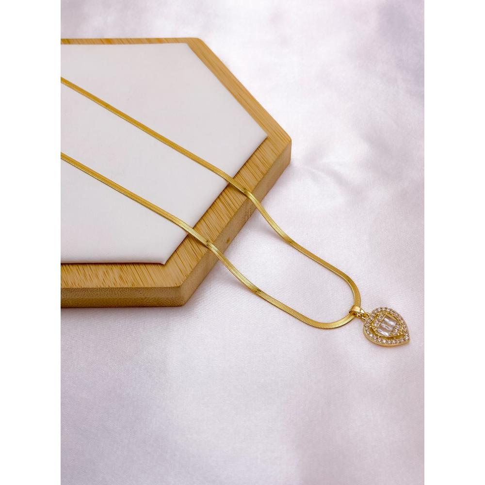COLAR AÇO INOX 45CM PINGENTE CORAÇÃO CRAVEJADO BANHADO - DOURADO