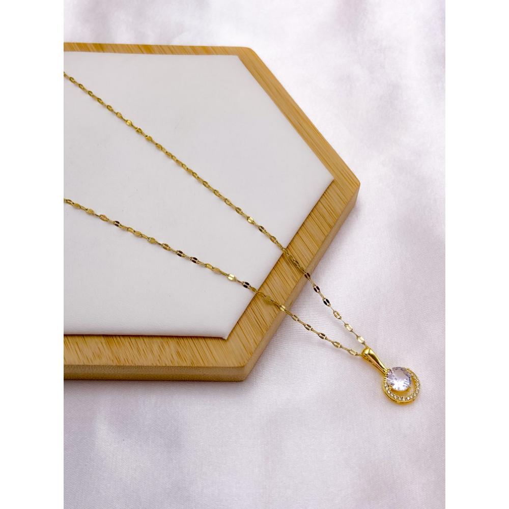 COLAR AÇO INOX 45CM PINGENTE REDONDO CRAVEJADO BANHADO - DOURADO