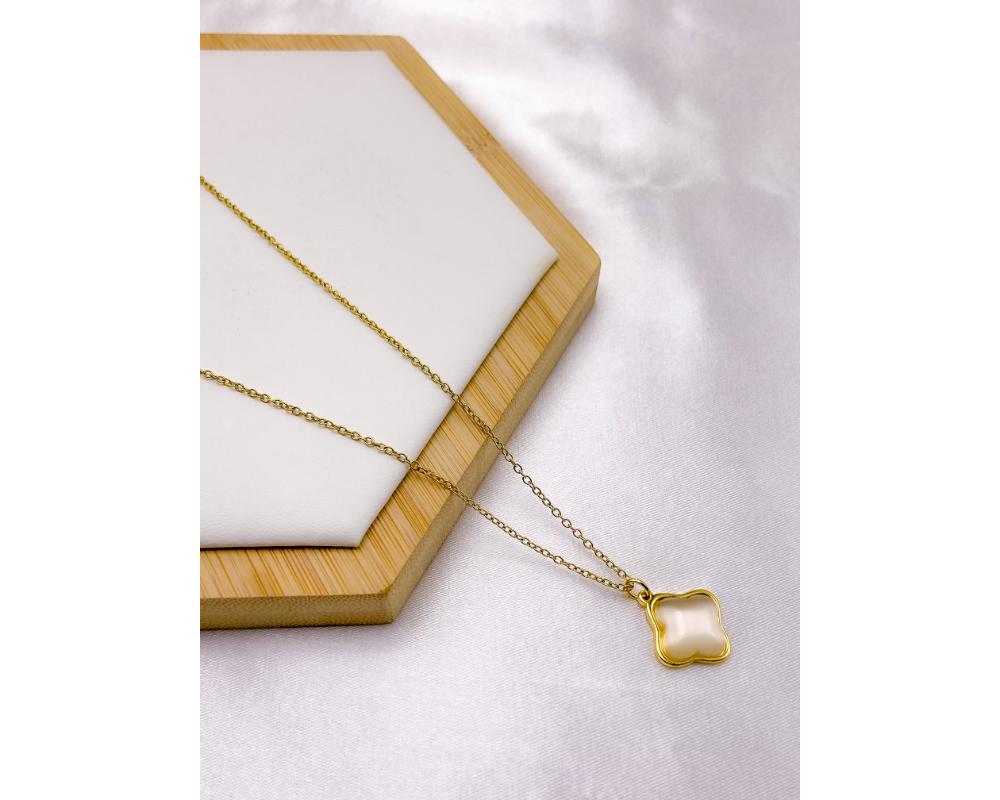 COLAR AÇO INOX 45CM PINGENTE TREVO - DOURADO