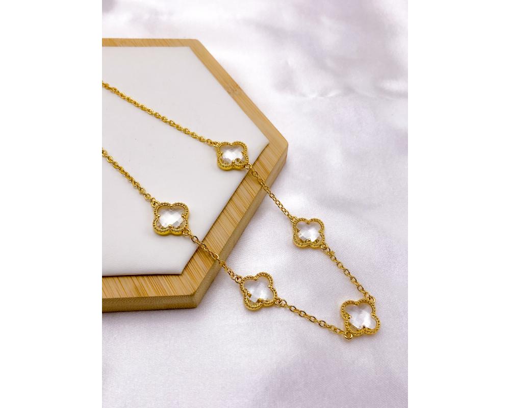 COLAR AÇO INOX 45CM TREVO CRISTAL - DOURADO