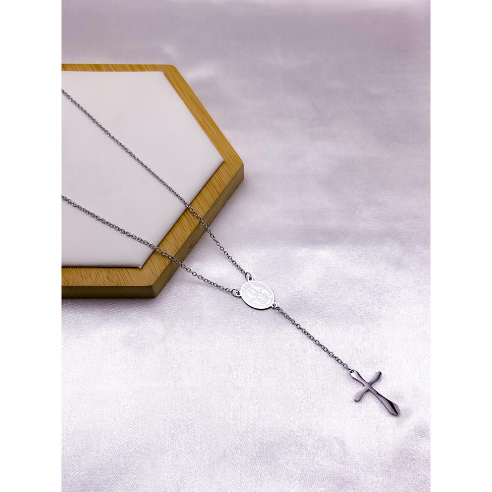 PRODUTO: COLAR AÇO INOX 55CM NOSSA SENHORA DAS GRAÇAS - PRATEADO