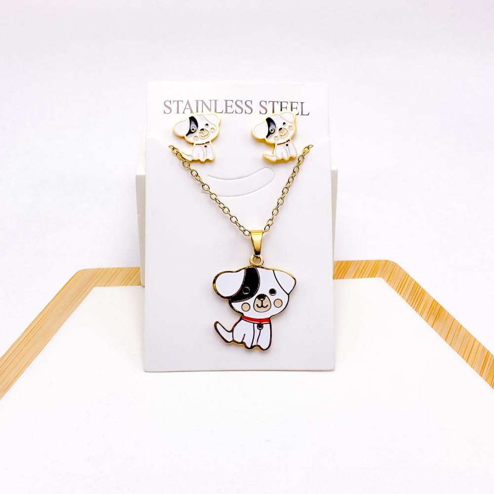 CONJUNTO COLAR E BRINCO AÇO INOXIDÁVEL CACHORRINHO - DOURADO