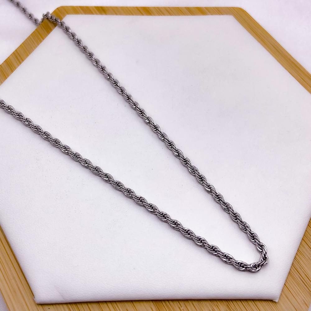 CORRENTE AÇO INOXIDÁVEL 60CM CORDÃO BAIANO 3.0MM - PRATEADA
