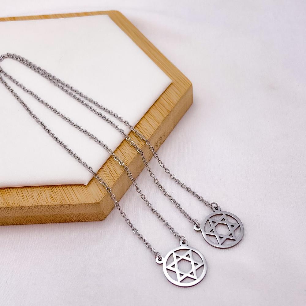 ESCAPULÁRIO AÇO INOX 50CM ESTRELA DE DAVI VAZADA - PRATEADO