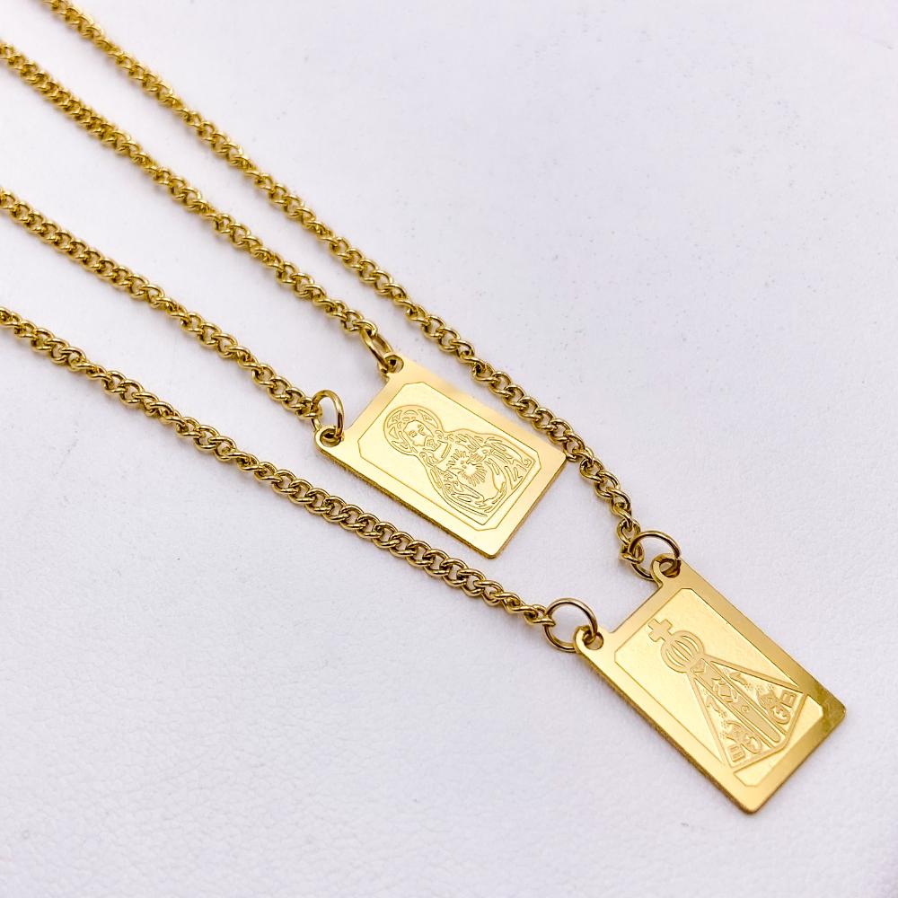ESCAPULÁRIO AÇO INOX 50CM JESUS E NOSSA SENHORA - DOURADO