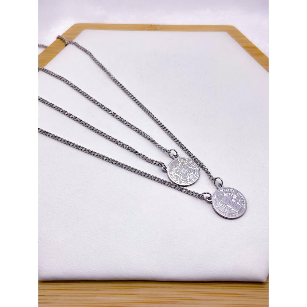 ESCAPULÁRIO AÇO INOX 50CM SÃO BENTO - PRATEADO