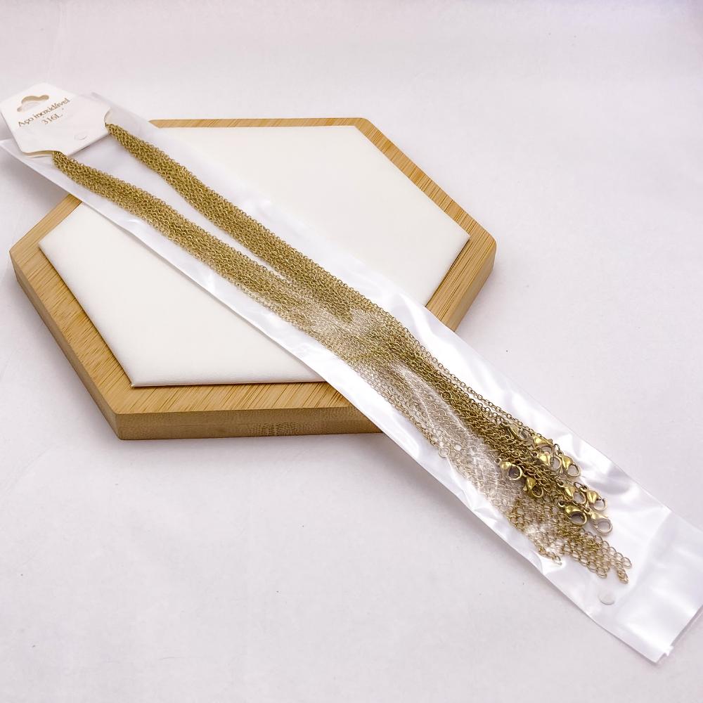 KIT 12 CORRENTES CADEADO 0.4 MM 45CM AÇO INOX 316L - DOURADA
