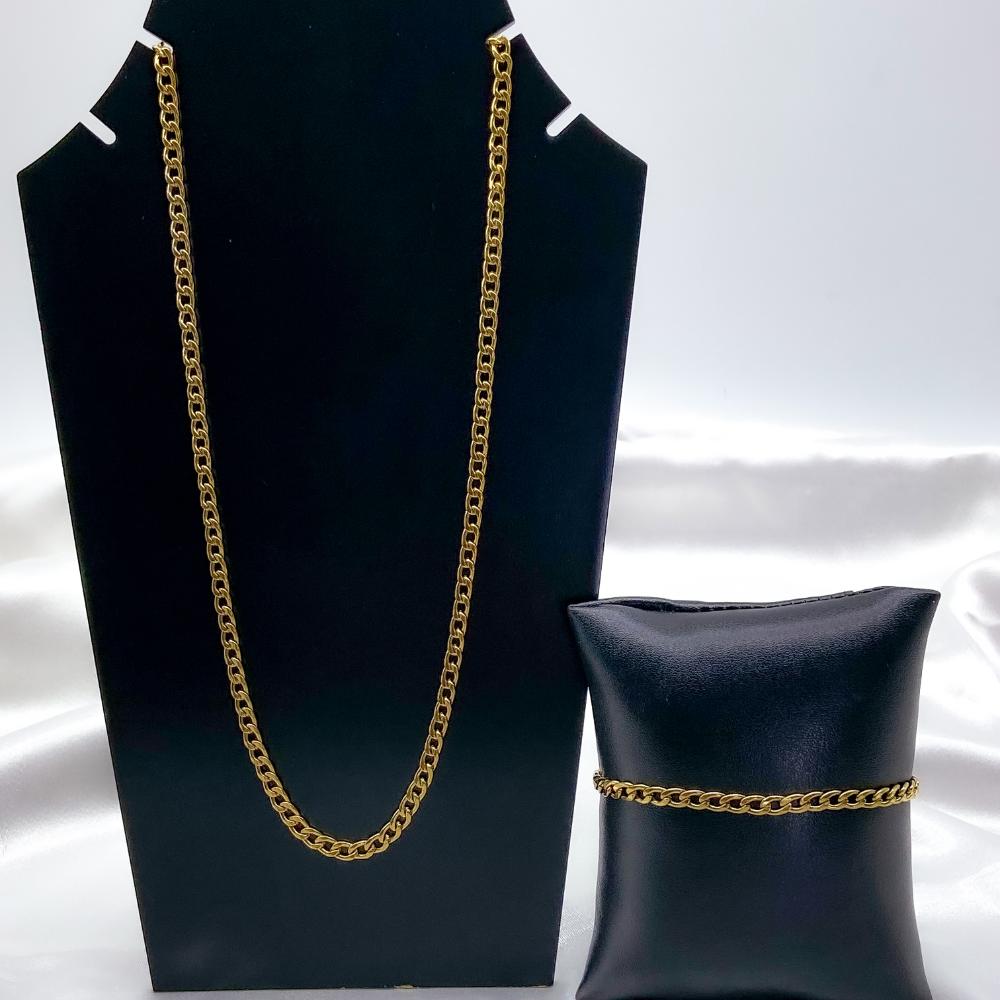 PRODUTO:KIT CORRENTE 70CM E PULSEIRA AÇO INOX 22CM GRUMET 1.2MM - DOURADA