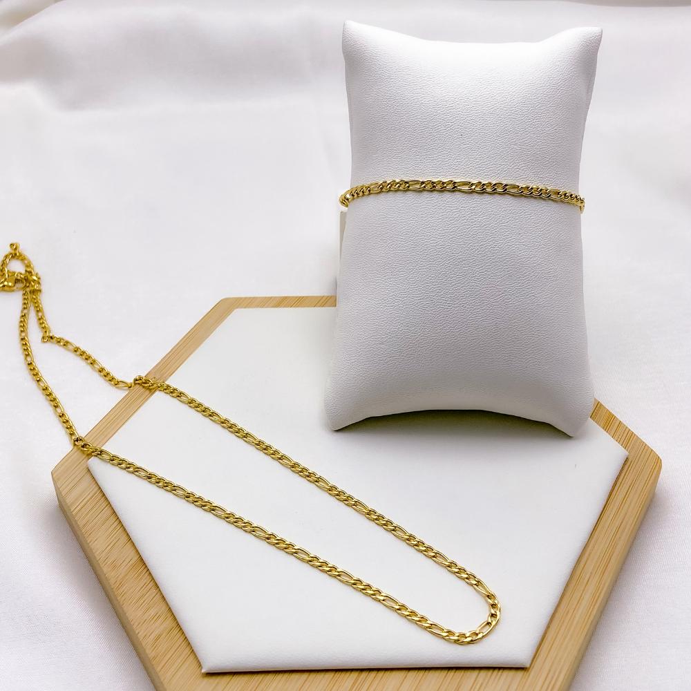 MEDIDAS: PULSEIRA AÇO INOX FÍGARO 0.8MM 22CM DOURADA E CORRENTE AÇO INOX FÍGARO 0.8MM 60CM DOURADA