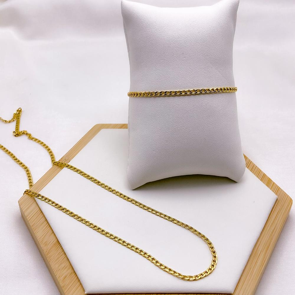 MEDIDAS: PULSEIRA AÇO INOX GRUMET 0.8MM 22CM DOURADA E CORRENTE AÇO INOX GRUMET 0.8MM 60CM DOURADA