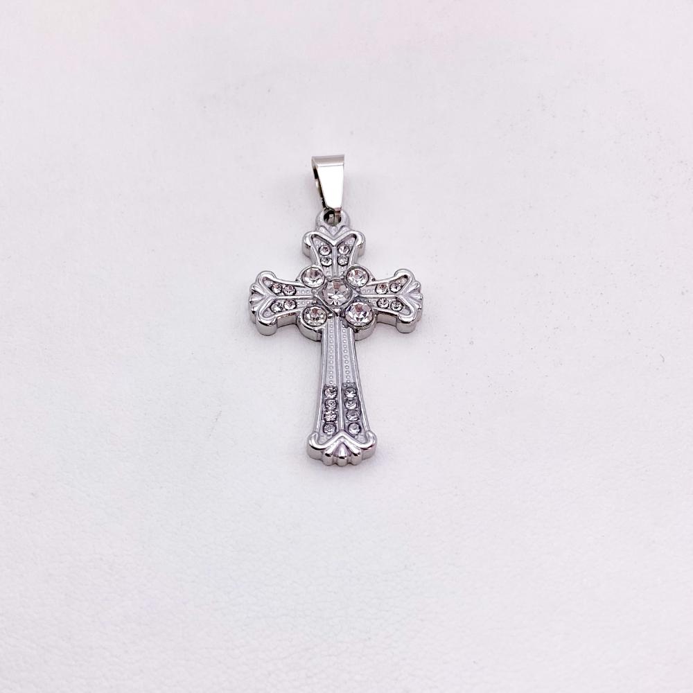 PRODUTO: PINGENTE AÇO INOXIDÁVEL CRUCIFIXO CRAVEJADO - PRATEADO