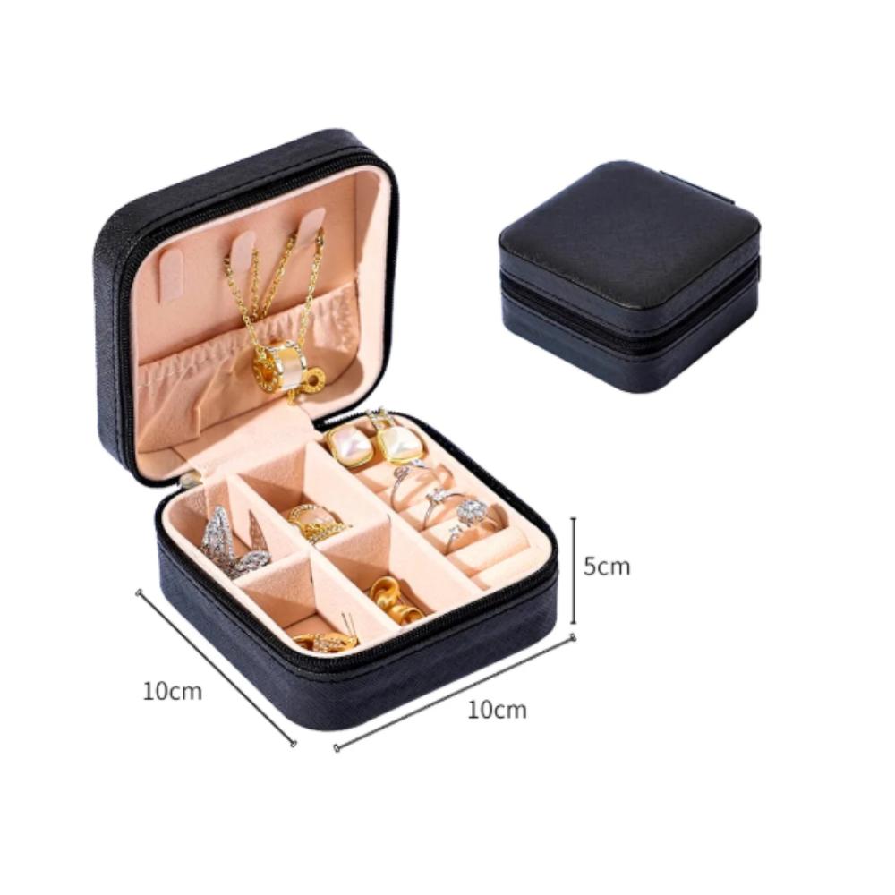 Nosso Porta Jóia de Bolsa é compacto e sofisticado, medindo 10x10x5 cm – ideal para viagens e passeios.