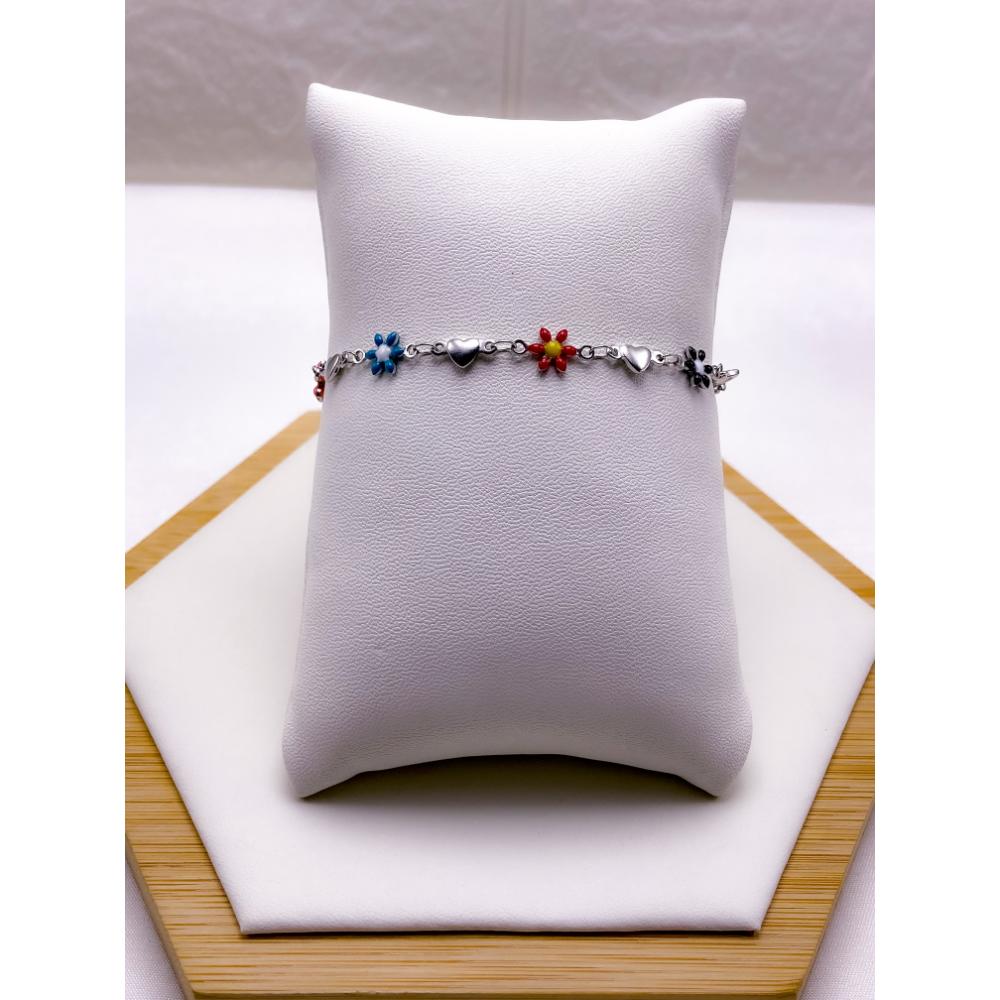 PULSEIRA AÇO INOX CORAÇÃO E FLOR - PRATEADA
