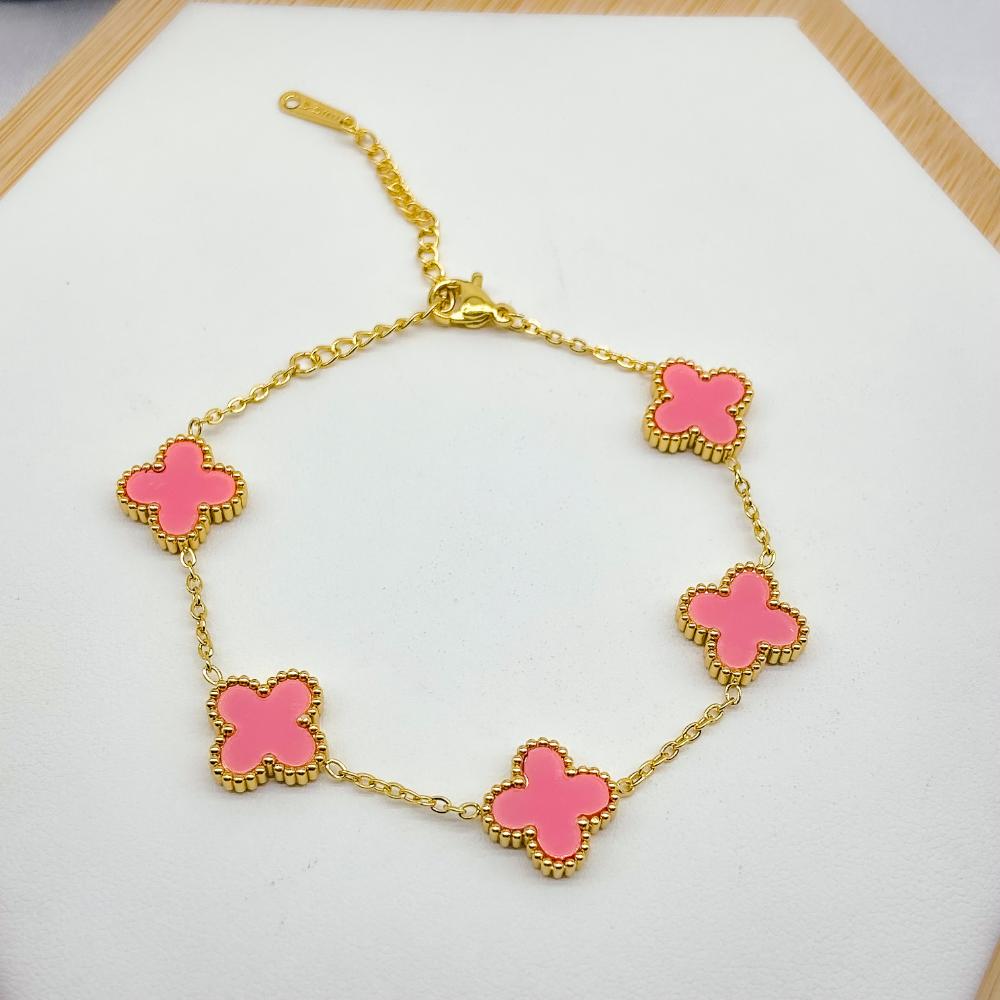 PRODUTO: PULSEIRA AÇO INOX DOURADA - TREVO ROSA