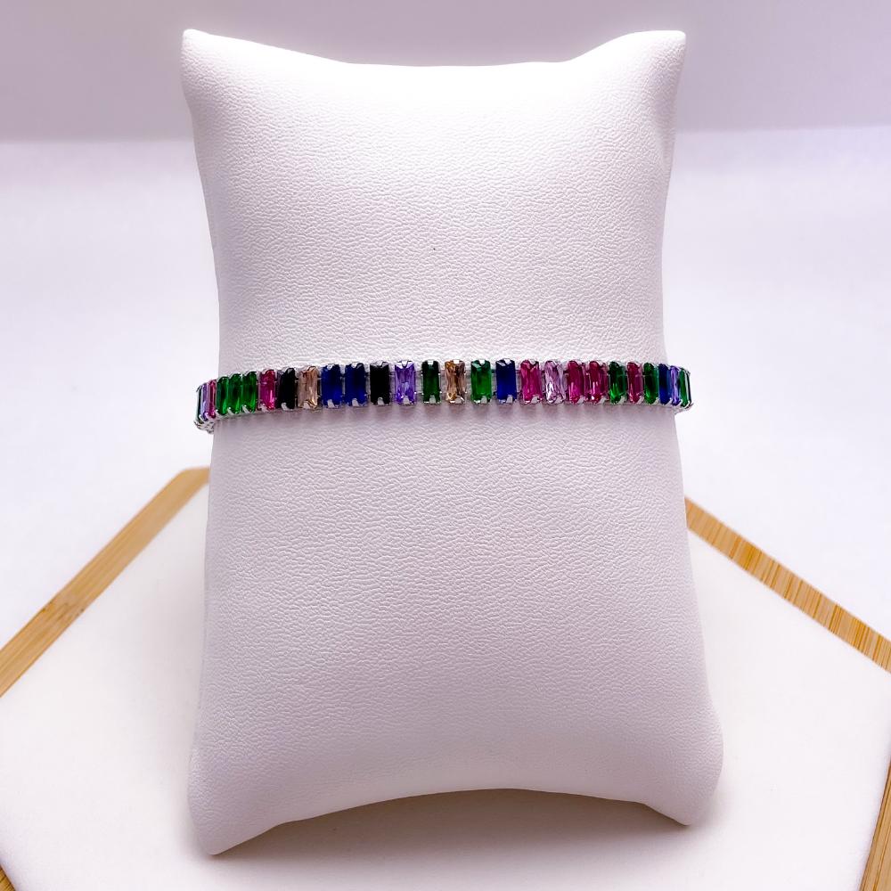 PULSEIRA AÇO INOX RIVIERA NAVETE COLORIDO - PRATEADA