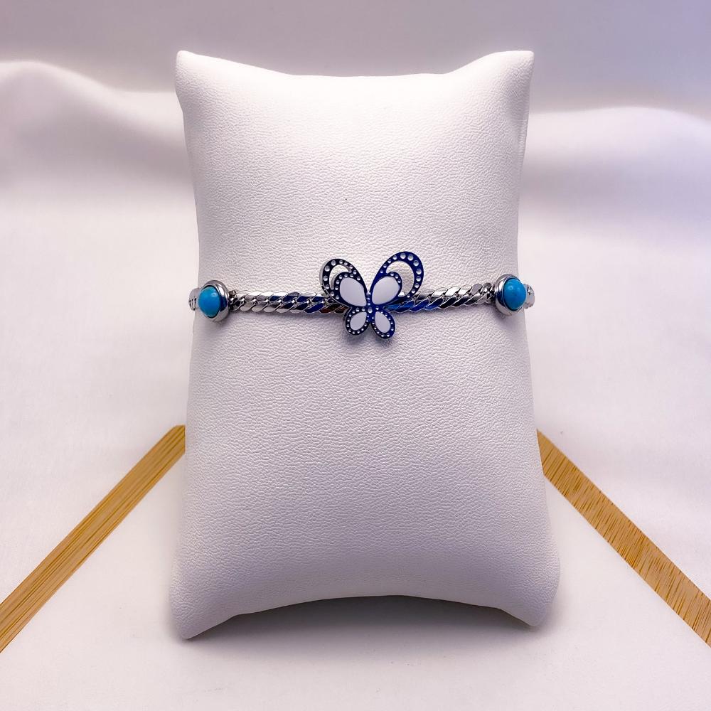 PULSEIRA AÇO INOXIDÁVEL BORBOLETA BRANCA - PRATEADA