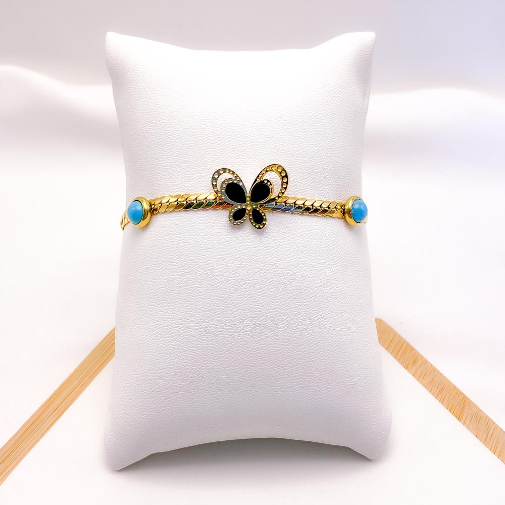 PULSEIRA AÇO INOXIDÁVEL BORBOLETA PRETA - DOURADA