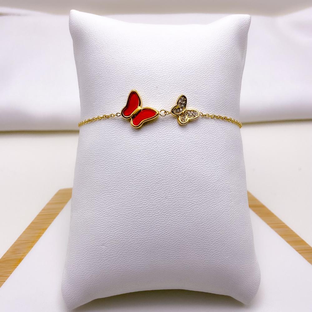 PULSEIRA AÇO INOXIDÁVEL BORBOLETA VERMELHA  - DOURADA