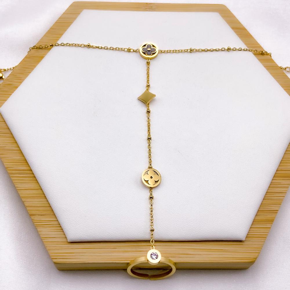 PULSEIRA AÇO INOXIDÁVEL COM ANEL AJUSTÁVEL TREVO PEROLADO - DOURADA