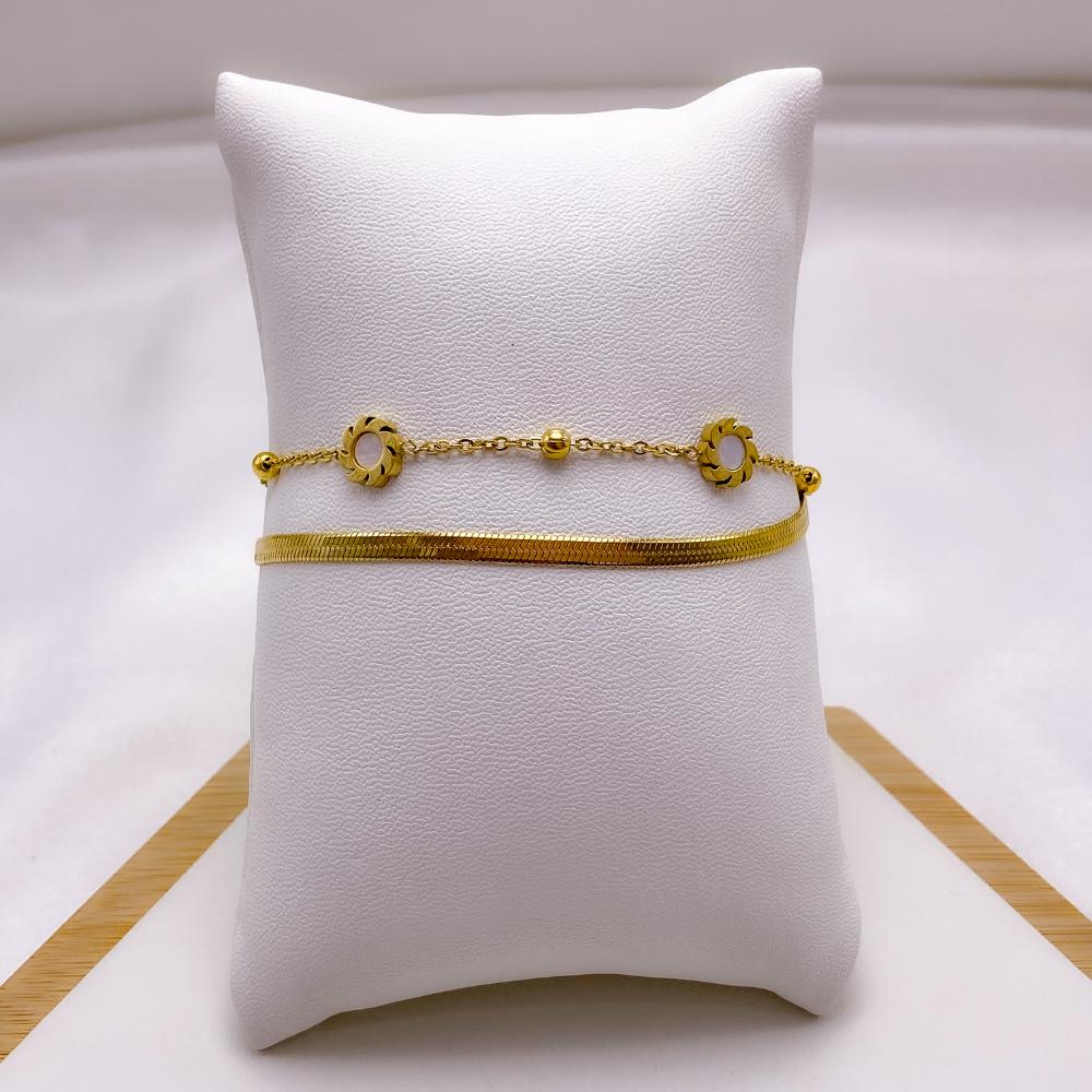 PULSEIRA AÇO INOXIDÁVEL DUPLA FITA E SOL PEROLADO - DOURADA