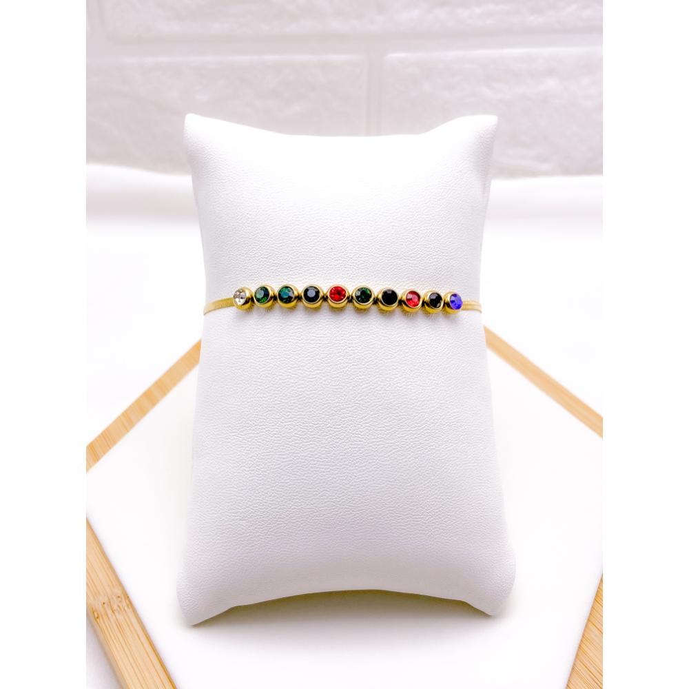 PULSEIRA AÇO INOXIDÁVEL FITA PEDRAS COLORIDAS - DOURADA